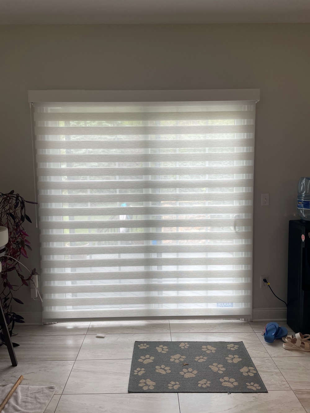 State-of-the-art Motorized Banded/Zebra Shades for Sliding Door in Kitchen on N Fullerton Ave in Montclair, NJ